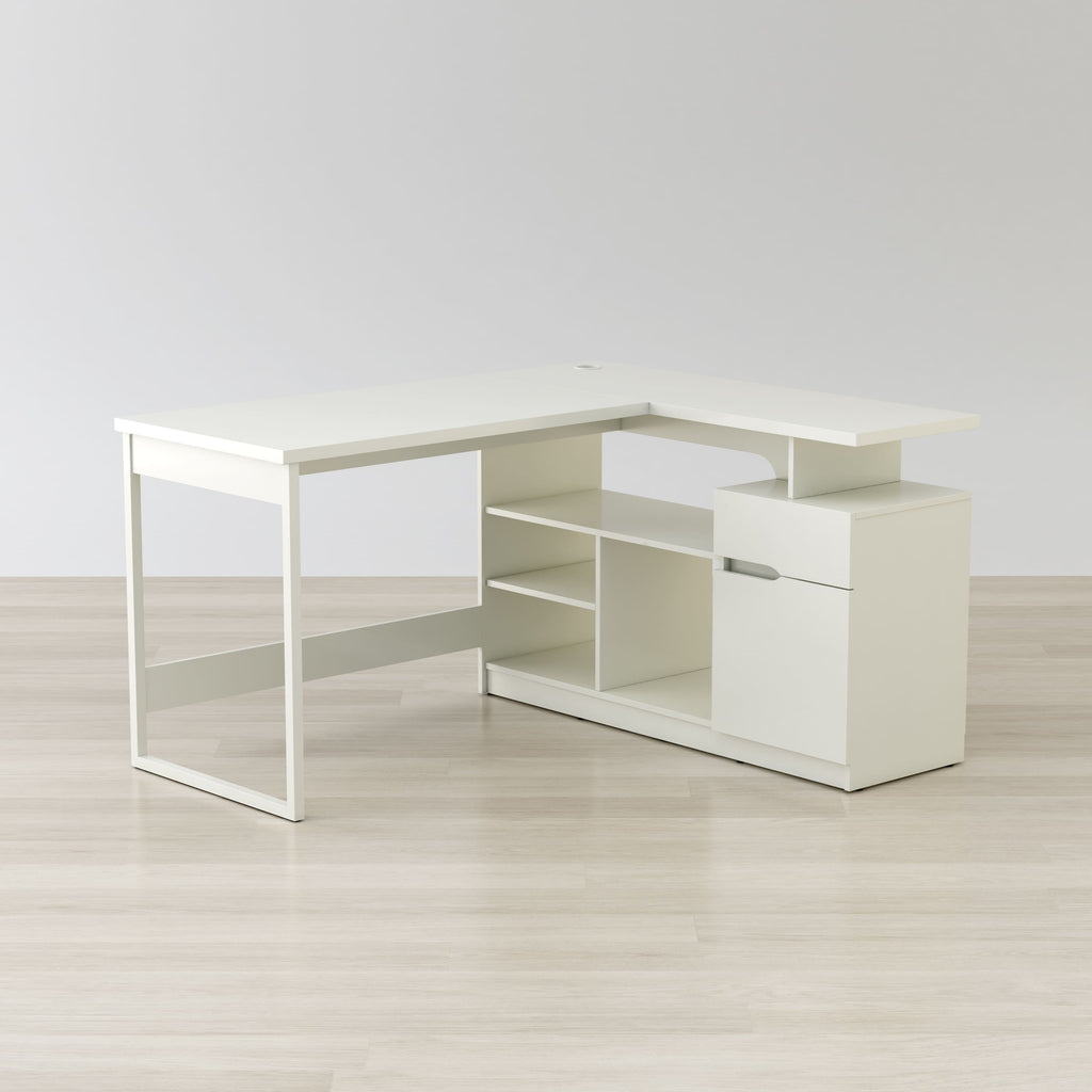L-Shaped Corner Desk – Lexi 55″ White Space-Saving Design