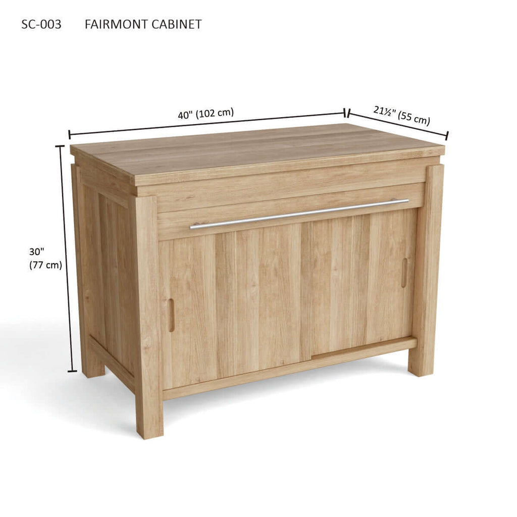 The Fairmont Cabinet is a stylish and functional addition to any poolside or patio, offering ample storage for towels, drinks, and essentials. Crafted from premium unfinished teak, it withstands sun, rain, and hail with ease. Featuring rust-free stainless steel handles, it arrives fully assembled—ready for instant use.