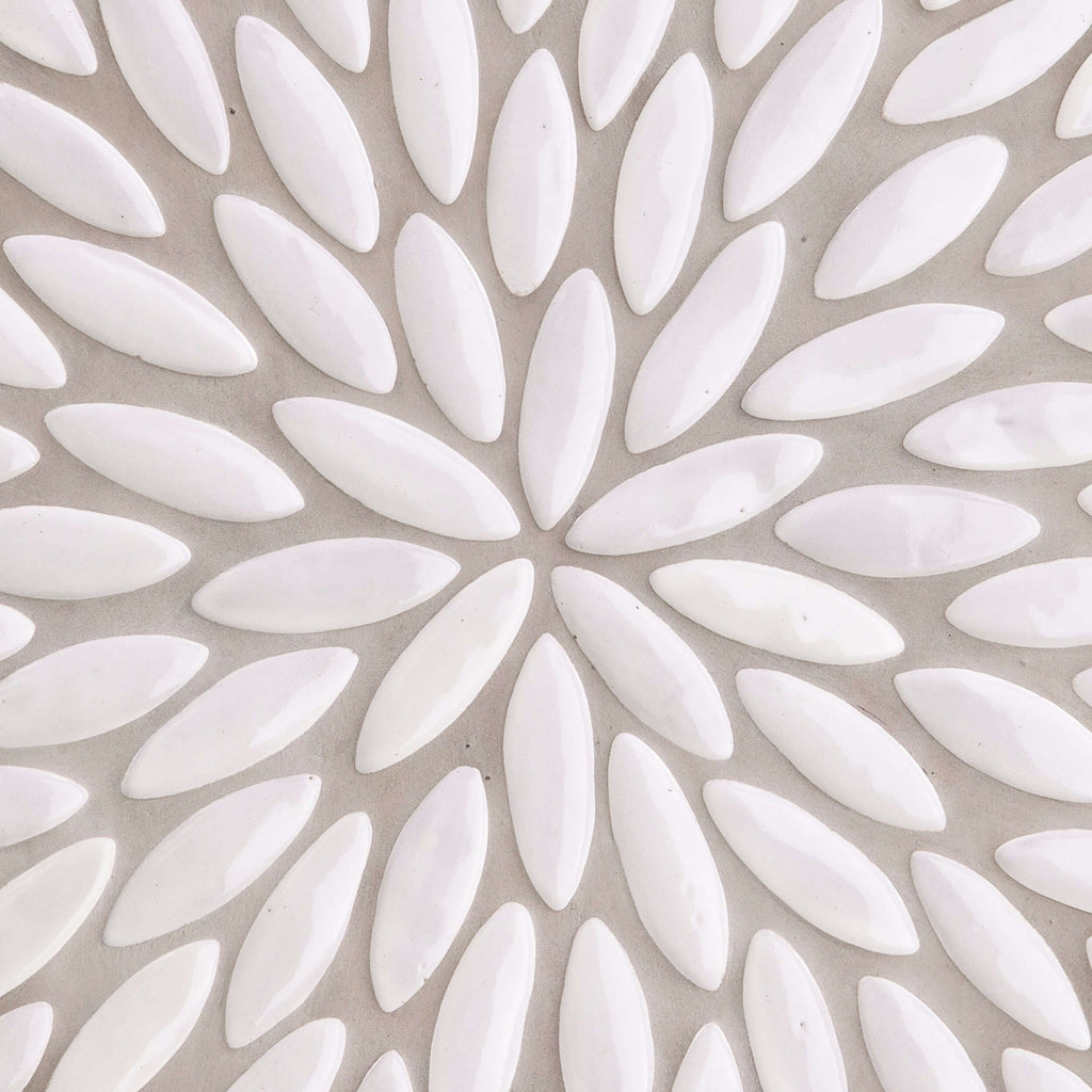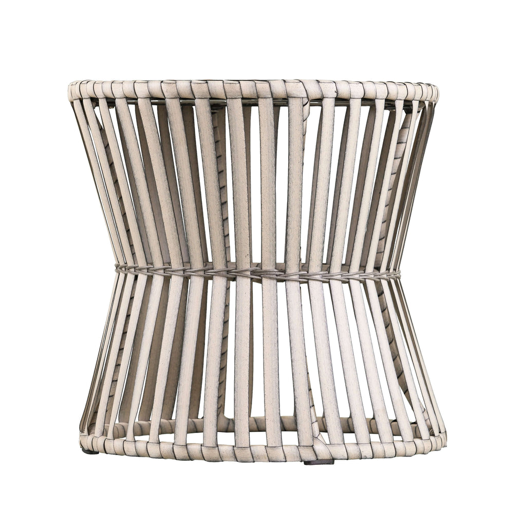 Weave a contemporary design with this outdoor accent table. A sturdy, all-weather frame round outdoor side table for your patio setup, while poly rattan straps string together a textured, natural look. A scattered ceramic petal pattern decorates the spacious tabletop, crafting a unique mosaic design and updating your poolside oasis. Slide this ceramic-top end table onto your deck to collect party drinks and snacks, or add alongside your outdoor sofa as a sophisticated plant stand.