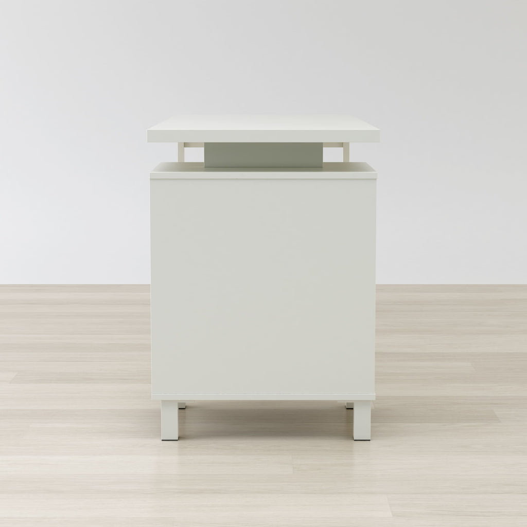 A compact writing desk for the home office, the Haslev Writing Desk is perfect for getting work completed on your laptop, studying, reading, or writing. Made of engineered wood and metal legs it features a metal running drawer and storage space below to store your books, files, office supplies and more. The perfect study desk for students or office workers, it’s finished in a white PVC laminate, a water resistant material.