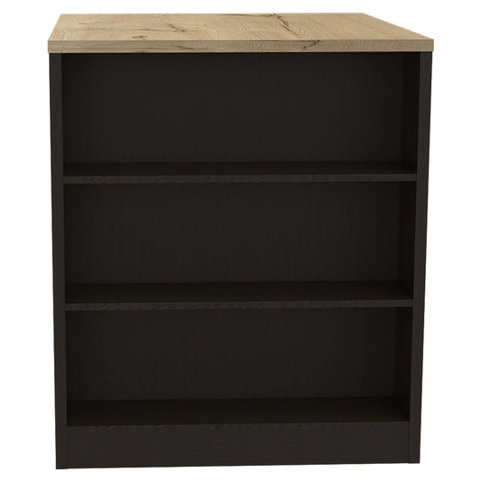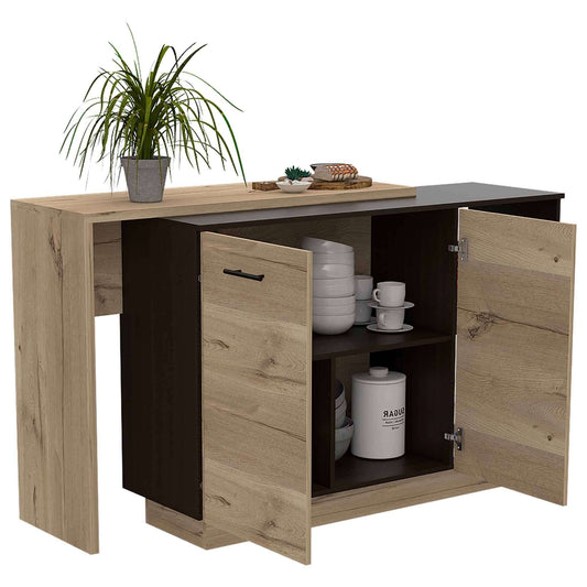 Black and Light Oak Contemporary Kitchen Island with Bar Table